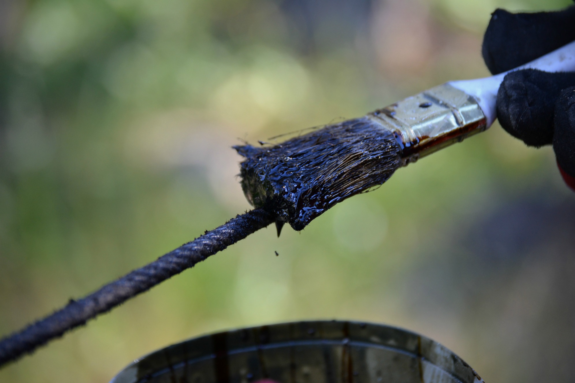 Yksi kesän projekteista oli tervanarun tervaus vanhojen miesten tapaan. Naru pingotettiin poroaidan tolpan ja puun väliin, ja siinä se valeltiin tervalla ja steariinilla ja annettiin kuivua. Välille kiristettiin. Ensi talvena nähdään oliko tämä toimiva konsti. Hyvältä se terva tuoksui, myös puureki sai uuden pintavärin.