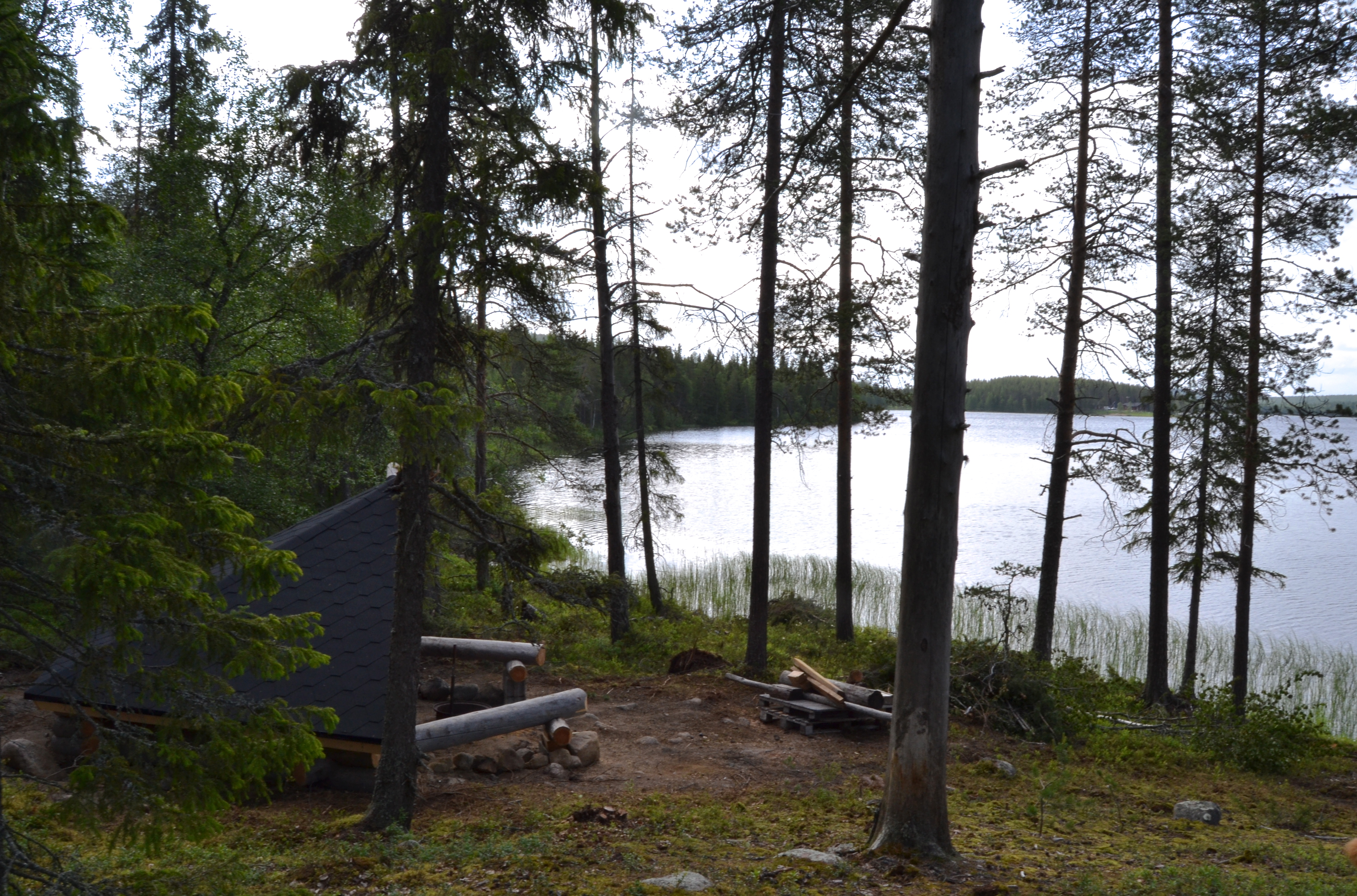 Viime kesän rakennusurakka on tässä. (Paitsi rakennettiin jalostamon pihaan myös uusi pikku varasto, mutta siitä ei laiteta kuvia. On vain omaan käyttöön.) Laavu on oikein hieno, se on noin kilometrin päässä mökeiltä. Sinne voi hipsiä joko rantaa ja polkuja pitkin tai sitten soudella veneellä. Talvisin sinne pääsee myös sivakoimalla jäätä pitkin. Mikäs sen mukavampaa! Laavulla viihtyy yllättävän hyvin, päiväunet ja myös yöunet siellä on mahdollista ottaa. Talvella tulen äärellä voi ihastella revontulia ja tähtitaivasta. Ei paha.